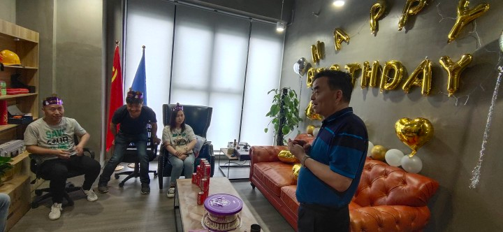 员工生日会 || 美好的时光里,有你!为促进公司与员工的沟通交流,增进相互之间的感情,体现公司对员工的人性化管理与关怀;并以此增强员工对公司的认同感和归属感,激发员工的工作积极性和热情,丰富员工的业余生活,华工每月将举办一次生日会。 6月4号在我司领导的积极筹备下,为员工举办庆生会。 总经理曹建初向参加生日会的全体寿星送上衷心的祝福并致以亲切的问候。